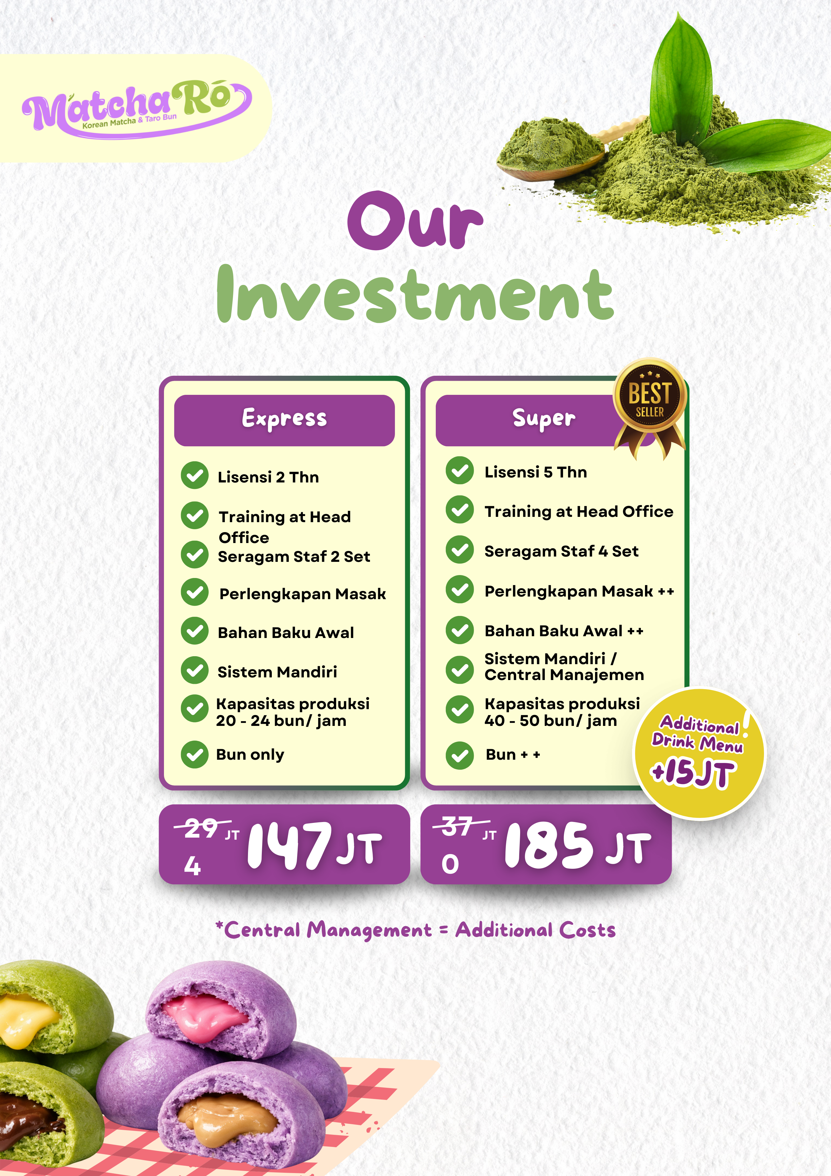 MATCHARO adalah harmoni Matcha & Taro dalam satu bun.